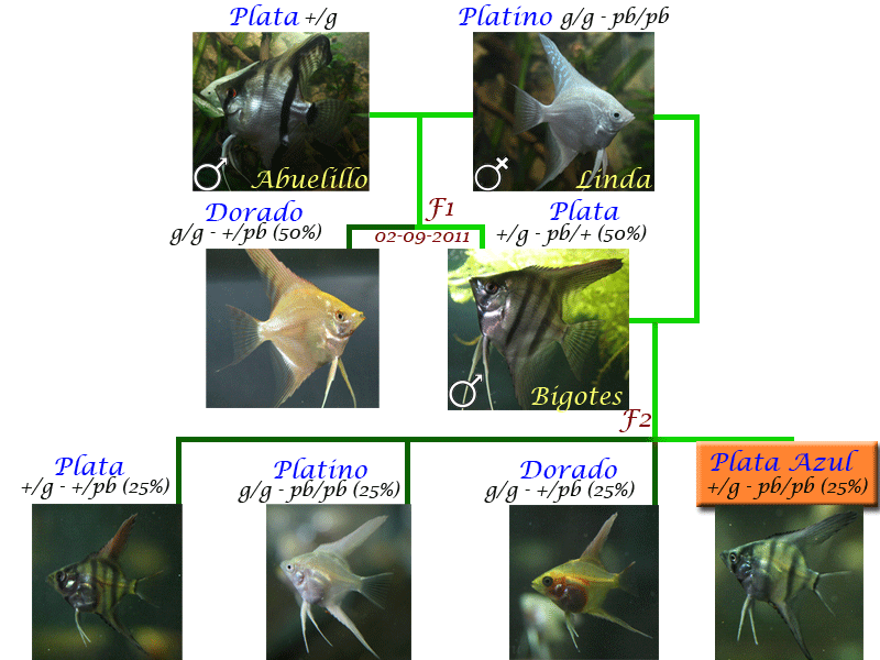 Lo más importante será sacar genéticamente (+/+ - pb/pb), pues dará juego limpio para obtener o trasladar el gen "pb" a otras variedades sin que intervenga el gen Dorado por enmedio.