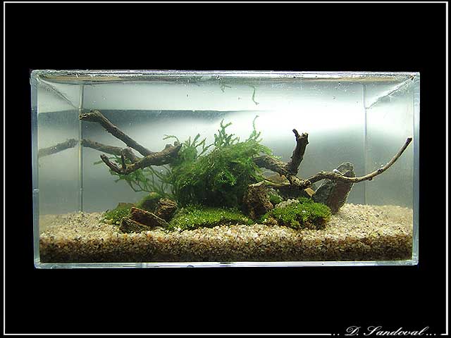 Senda , la ultima foto que aparece , es la de mi primer miniacuario , de 0,8 litros con Riccia fluitans y lo mantuve unos meses con co2 a base de levadura y azucar , luego me volví mas comodón y practico y solo los aguantaba unas semanas , sin nada , los deshacía y volvía a montar otro en su lugar . A partir de 6 litros si que les he puesto co2 , siempre del casero.